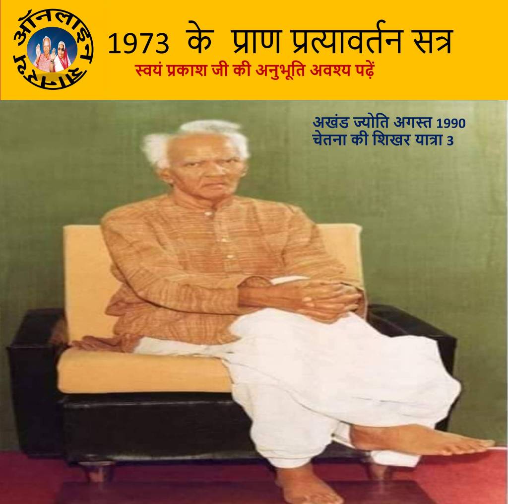 आज का लेख हमने अखंड ज्योति के अगस्त 1990 पर आधारित किया है। यह अंक ब्रह्मवर्चस के कार्यकर्ताओं ने स्मृति विशेषांक के रूप में प्रस्तुत किया था। गुरुदेव के बारे में इस अंक में पढ़ते हुए जिज्ञासा हुई कि ” प्राण प्रत्यावर्तन ” क्या है। गूगल सर्च से इस टॉपिक पर 20 पन्नों का आर्टिकल ” चेतना की शिखर यात्रा 3 ” में से मिला। कई दिन बार -बार लगातार इस टॉपिक पर स्वाध्याय करते हुए लग रहा था कि इसको आपके समक्ष सरल भाषा में केवल 3 -4 पन्नों में प्रस्तुत करना बहुत ही कठिन है ,लेकिन गुरुदेव के मार्गदर्शन ने एक बहुत ही उपयोगी लेख लिखवाया है। ओरिजिनल लेख में तो कई साधकों की अनुभूतियाँ हैं लेकिन हमने केवल एक की ही (स्वयं प्रकाश ) विस्तार से प्रस्तुत की है। तो आइये देखें प्राण -प्रत्यावर्तन की क्रिया