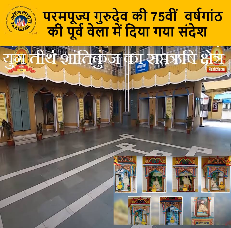 हमने आपसे हमारी हीरक जयंती ( Diamond Jubille ) पर एक बात और कहनी है। अब हम पचहत्तर साल के हो गये। अरे हम तो जब से यह सृष्टि बनी है, तभी से काम कर रहे हैं और जब तक यह रहेगी, हमें काम करना है। हमारी मुक्ति नहीं होगी। इस संसार में जब तक सब मनुष्य मुक्ति नहीं पा लेंगे, हमें मुक्ति की अभिलाषा नहीं है। इस दुनिया के सभी मनुष्य जब मुक्ति पा लेंगे, तो हम सबसे आखिरी आदमी होंगे, जो मुक्ति की अभिलाषा रखेंगे। मित्रो! यह हीरक जयंती क्या बात है? जब आदमी पचहत्तर वर्ष का हो जाता है, तो यह जयंती मनाई जाती है। सौ साल में शताब्दी मनाई जाती है। अब हमारा यह स्थूल शरीर विद्रोह कर रहा है। हम बहुत दिन जिएंगे नहीं, यह हमारी कामना नहीं है। अब हम सूक्ष्म एवं कारण शरीर में रहकर काम करना चाहते हैं। अब हम पाँच कोषों से, पाँच शरीरों से, पाँच मोर्चों पर लड़ेंगे। हीरक जयंती वसंत पंचमी से शुरू हुई है और अगले वर्ष तक यह मनाया जाएगी । हमारे पास ढेरों पत्र आए हैं कि गुरुजी हम आपका जुलूस निकालेंगे प्रदर्शनी लगाएंगे। इसी तरह न जाने क्या-क्या पत्र आए हैं। हमने विचार किया कि हमें इस जयंती वर्ष में क्या करना चाहिए? हम यानी हमारे मिशन का विस्तार कैसे हो? जन-चेतना को कैसे जगाया जाए? हमने जुलूस आदि के लिए लोगों को मना कर दिया। इस धूम धड़ाका से कोई लाभ नहीं होगा। हमने एक सौ आठ व एक हजार आठ कुंडीय यज्ञ किए, जो शानदार थे, लेकिन देखा कि उसके दो साल बाद लोग उसे भूल गए। इस तरह इस धूम धड़ाके से कोई लाभ नहीं होता है। अब इससे मेरा मन भर गया है। अभी हम इन्हें नहीं मनाना चाहते। आपको हमारी बात मानना चाहिए। आगे जब जरूरी होगा, हम बता देंगे। अगर आप हमारी इच्छा के अनुसार मनाना चाहते है तो हमें हीरों के हार पहना दीजिए। फूलों के हार तो हमें कई किलो और क़्वींटलों तक पहन लिए होंगें। आप हमारे हीरे मोती हैं। आप हमारे साथ -साथ चलें तो वही हीरों की माला है। हमने शक्तिपीठ भी बनाईं लेकिन उनसे भी मन भर सा गया है। अब यह केवल मंदिर सी बन कर रह गयी है। वहां जन जागृति की कोई बात नहीं है। वहां देवी बैठी है जिसकी सुबह शाम पूजा हो जाती है। कायाकल्प की कोई बात नहीं होती है ,इससे मुझे बहुत कष्ट होता है