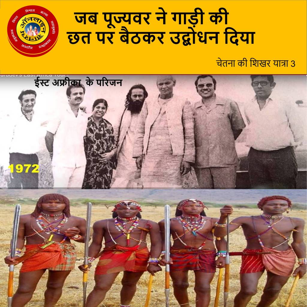 भारत से गुरुदेव के साथ आए आत्मयोगी को बड़ी हैरानगी हुई गुरुदेव ने यह भाषा इन आदिवासियों के साथ कैसे बोल ली । आत्मयोगी के बारे में जब हमने विद्या परिहार जी से पूछा तो उन्होंने कहा गुरुदेव के साथ भारत से एक दाढ़ी वाले पुरष आये थे। लेख के साथ पिक्चर में आप जो दाढ़ी वाले देख रहे हैं यह वही हो सकते हैं। यह पिक्चर भी विद्या जी ने ही हमें उपलब्ध कराई थी। नैरोबी में गुरुदेव विद्या परिहार के घर में ठहरे थे। विद्या परिहार जी के बारे में अगर अधिक लिखेंगें तो लेख की दिशा कहीं और ही चली जाएगी लेकिन नीचे दिए गए वीडियो लिंक को अवश्य देख लें। https://youtu.be/o_793AOO680