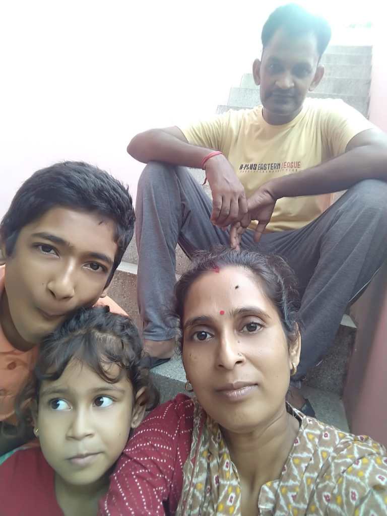 बाइस सालों का वैवाहिक जीवन है । पति आसाम रैफल्स में सिपाही हैं ,बेटा निर्झर आनंद, “मेरठ प्रभात आश्रम गुरुकुल में नवीं का छात्र, छः वर्षीय बेटी स्तुति आर्या (मिट्ठी) साथ में रहती है।