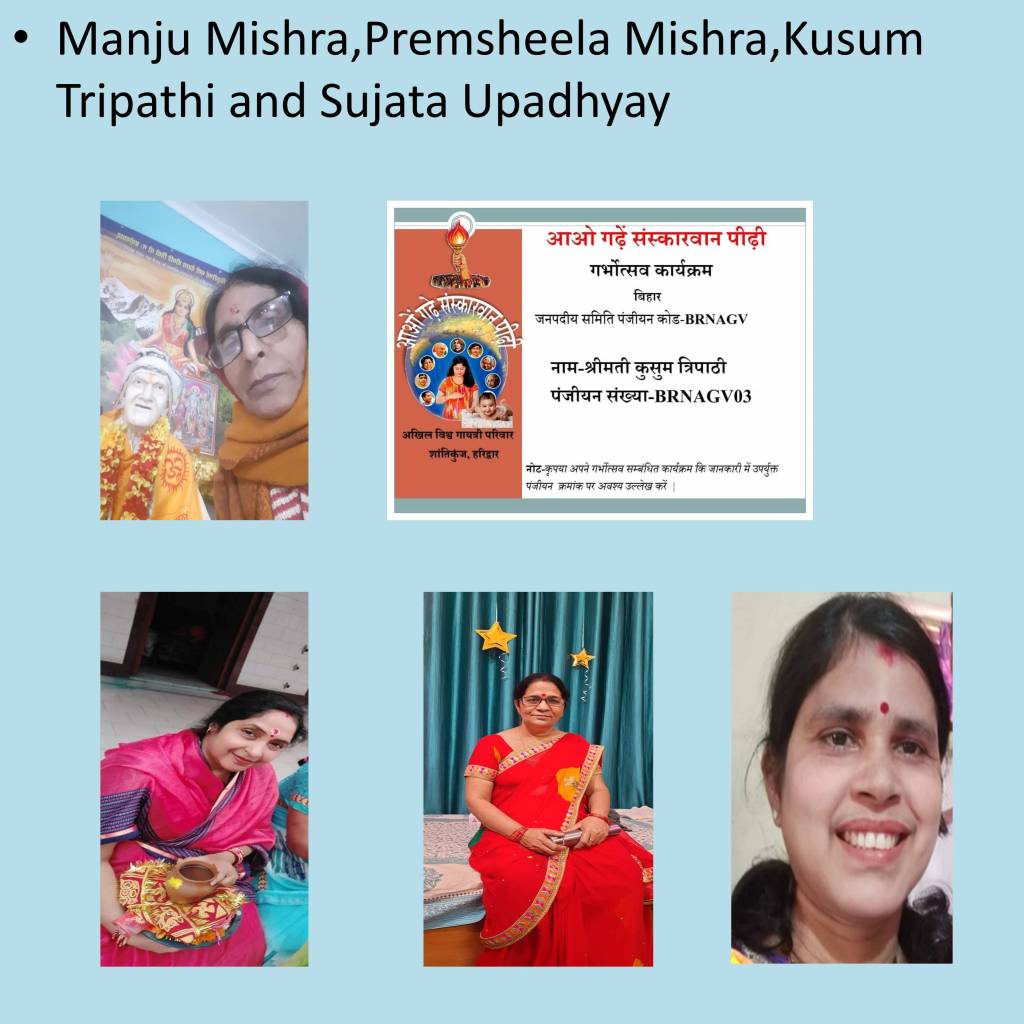 3.प्रेमशीला मिश्रा बहिन जी के अनुसार आज नवरात्रि के समापन अवसर पर हम सबने
