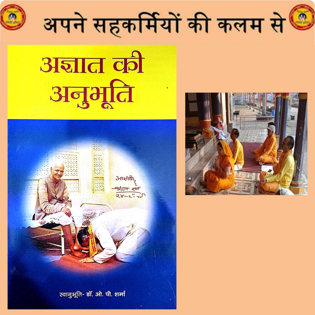 आजकल हम आदरणीय डॉ ओ पी शर्मा जी की पुस्तक “अज्ञात की अनुभूति” का स्वाध्याय करके समझने का प्रयास कर रहे हैं। 202 पन्नों की इस पुस्तक में 1970 से सुरक्षित रखी डायरी और शांतिकुंज में परम पूज्य गुरुदेव, वंदनीय माता जी, श्रद्धेय डॉक्टर प्रणव पंड्या जी, शैल जीजी एवं अनेकों के संस्मरण प्रकाशित किये गए हैं। हम डॉक्टर साहिब का और अभिषेक मिश्रा जी का हृदय से धन्यवाद् करते हैं जिन्होंने यह पुस्तक उपलब्ध कराई, अभी यह पुस्तक ऑनलाइन उपलब्ध नहीं है।