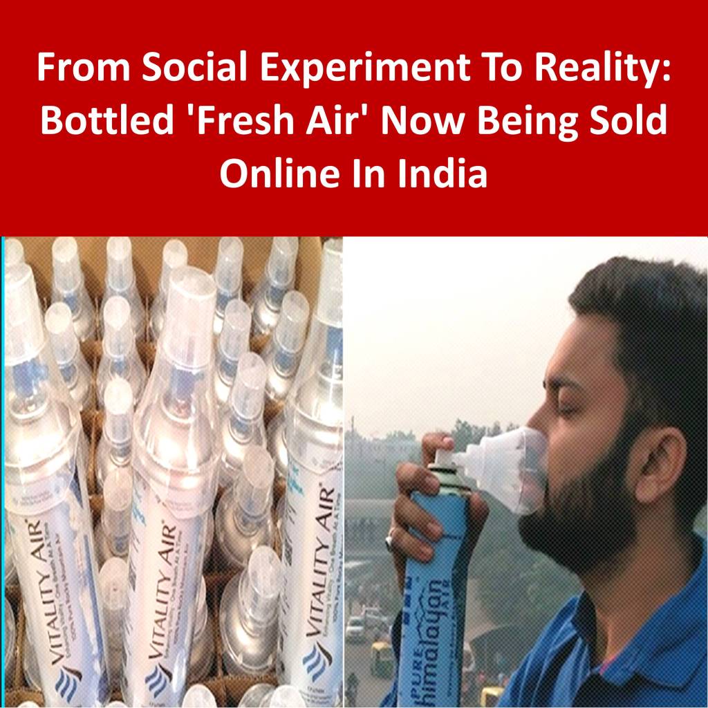 भारत में Pure Himalayan air का 10 लीटर का कैन 550 रुपये में बिक रहा है। यह विचार कनाडा की कंपनी Vitality Air से आया, जिसने बोतलबंद हवा बेचना शुरू किया। इसके बाद ऑस्ट्रेलिया का एक ब्रांड Auzair आया, जो भारत में भी अपने उत्पाद बेच रहा है। Auzair की 7.5 लीटर ताज़ी हवा की बोतल की कीमत करीब 1,500 रुपये है। 2014 में आरम्भ हुई Vitality air नामक कंपनी ने कनाडा के Banff, Alberta क्षेत्र से फ्रेश वायु को compressor की सहायता से cylinders में भरकर विश्व के उन स्थानों पर मार्किट करना आरम्भ किया जहाँ Air quality की गंभीर समस्या है। विश्व स्वास्थ्य संगठन ने नई दिल्ली को सबसे प्रदूषित शहर के रूप में टैग किया है। यहाँ Vitality air की बोतलबंद हवा 3-लीटर और 8-लीटर के cylinder में उपलब्ध है। इस twin-pack की कीमत 1,450 रुपये से 2,800 रुपये के बीच है यानि 12.50 रुपये प्रति सांस।