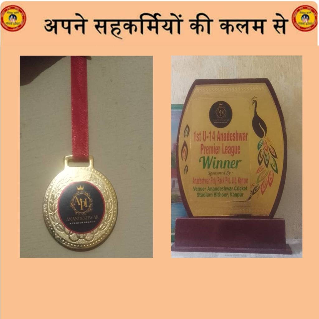 आदरणीय अरुण भैया जी हम बहुत ही हर्ष के साथ अवगत कर रहे हैं कि कल 15 अप्रैल, 2024, मंगलवार के दिन, प्रथम U-14 आनंदेश्वर प्रीमियर लीग मैच का ट्रूर्नामेंट का फाइनल मैच,आनंदेश्वर पोली पैक (प्रा) लिमिटेड कानपुर नगर द्वारा आनंदेश्वर क्रिकेट स्टेडियम बिठूर कानपुर नगर उत्तर प्रदेश में सम्पन्न हुआ। परम पूज्य गुरुदेव की कृपादृष्टि एवं आनलाइन ज्ञानरथ गायत्री परिवार के साथिओं के सामुहिक आशीर्वाद से बेटे आयुष कुमार पाल को सफलता मिली है और ट्राफी व गोल्ड मेडल से सम्मानित किया गया है। यह बहुत ही प्रसन्नता की बात है जिसे हम सबसे पहले अपने इस छोटे से समर्पित परिवार में शेयर कर रहे हैं l हमें अटूट विश्वास है कि बेटे आयुष पर आप सबका सामूहिक आशीर्वाद इसी तरह निरंतर बना रहेगा और वोह एक दिन उच्चकोटि का संस्कारित व पवित्र भावना से ओतप्रोत विश्व चैम्पियन भारतीय खिलाड़ी बनकर अपना एवं परिवार का नाम विश्व में नाम रोशन करेगा l बेटे की बहुत ही लगन, निष्ठा व ईमानदारी से निरंतर मेहनत को हम नतमस्तक हैं और कभी-कभी इस तरह की निरंतर मेहनत को देखकर हम दोनों लोगों की आँखों में आँसू आ जाते हैं कि इतनी कड़ी मेहनत तो हम लोगों ने कभी नहीं किया है, जितनी मेहनत कुछ बनने के लिए बेटा आयुष कुमार पाल कर रहा है l