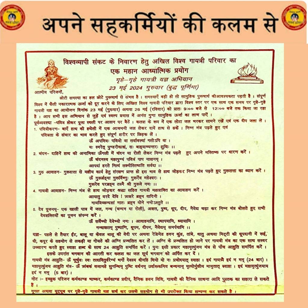 औनलाइन ज्ञान रथ गायत्री परिवार के सभी सहकर्मी भाई बहनों को कोटि कोटि प्रणाम