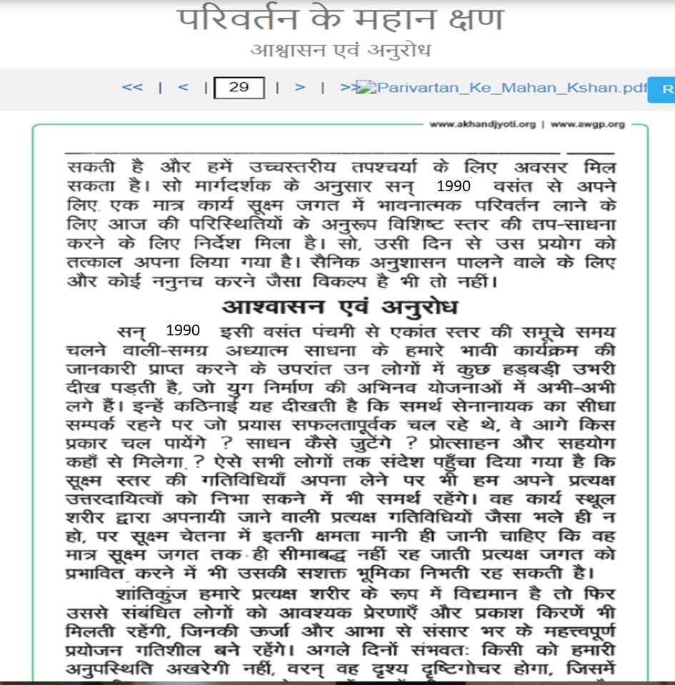 यह मिशन सनसनाता हुआ अपने लक्ष्य की दिशा में आगे बढ़ता चला जा रहा है। इस कथन की पुष्टि के लिए जनवरी 1988 की अखण्ड ज्योति पत्रिका में पृष्ठ 30 पर प्रकाशित “यह ज्योति फिर भी बुझेगी नहीं ” शीर्षक के अंतर्गत लेख एवं “परिवर्तन के महान् क्षण” पुस्तक में “आश्वासन और अनुरोध” शीर्षक वाला लेख अद्भुत जानकारी से भरा है।