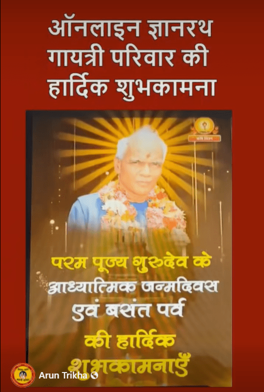 4 फ़रवरी 2025, मंगलवार को लिखी जा रही यह पंक्तियाँ ऑनलाइन ज्ञानरथ गायत्री परिवार के किसी भी साथी को ऊर्जावान किये बिना नहीं रह सकतीं क्योंकि वसंत पंचमी का दिन गायत्री परिजनों के जीवन में एक विशेष स्थान बनाये बैठा है। वर्ष 1926 की वसंत पंचमी का दिन परम पूज्य गुरुदेव के जीवन का एक अति विशिष्ट दिन था। यही वोह दिन था जब परम पूज्य गुरुदेव के हिमालयवासी गुरु (जिन्हें हम सब दादा गुरु के नाम से सम्बोधन करते हैं) के साथ,आंवलखेड़ा गाँव,(आगरा) स्थित हवेली की कोठरी में, दिव्य साक्षात्कार हुआ था, उनके तीन जन्मों की कथा एक फ़िल्म की भांति दिखाई गयी थी। उसी दिन से,आज लगभग 100 वर्ष (2026 में 100 वर्ष) बाद भी पूज्यवर ने इस दिन को अपना आध्यात्मिक जन्म दिन घोषित करते हुए,अपने सभी क्रियाकलापों को वसंत पंचमी के दिन ही आरम्भ करने का संकल्प लिया और उसे पूर्ण भी किया।
