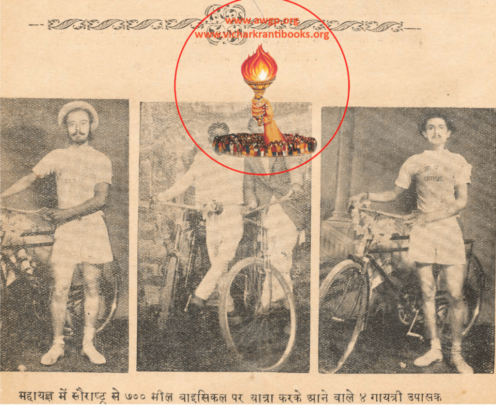 यद्यपि सभी शाखाओं को सूचना दे दी गई थी कि पहले से स्वीकृति पाने वाले श्रद्धालु/याज्ञिक ही भेजे जायें फिर भी लोग असुविधा का ध्यान न करके सैकड़ों कोस की दूरी से चले आये। अनेक उत्साही व्यक्तियों ने तो कई-कई सौ मील का रास्ता बाइसिकल पर ही तय किया । सौराष्ट्र के ध्रांगधा नगर से श्री शशिकांत और श्री रिषीकेश नाम के दो सदस्य 700 मील की यात्रा करके मथुरा पहुँचे थे इसी प्रकार सौराष्ट्र के ही लाखनका नामक स्थान के निवासी श्री पुरुषोत्तमदास पोपट लाल सोनी और श्री मूलजो नरसी पटेल इससे भी अधिक दूर से बाइसिकल द्वारा आये। रायपुर ( म०प्र०) के भी कई युवक यज्ञारम्भ से कई दिन पहले बाइसिकलों पर मथुरा पहुँच गये थे और यहाँ पर उन्होंने आसपास के स्थानों में भ्रमण करके यज्ञप्रचार का कार्य भी किया। इटावा से भी श्री महावीर सिंह और मिश्रा जी मथुरा तक बाइसिकलों पर ही आये थे। ये समस्त गायत्री भक्त रास्ते भर यज्ञ और गायत्री का प्रचार करते तथा परचे बाँटते हुए आये थे। रास्ते में जितने बड़े कस्बे/नगर मिले उन सब में इन्होंने गायत्री तपोभूमि का सन्देश सुनाया। सीसोली शाखा से भी श्री अजयदत्त नाम के वृद्ध व्यक्ति जो सर्वथा दृष्टिहीन थे अकेले ही कई सौ मील की यात्रा करके यज्ञनगर में पहुँच गये ।