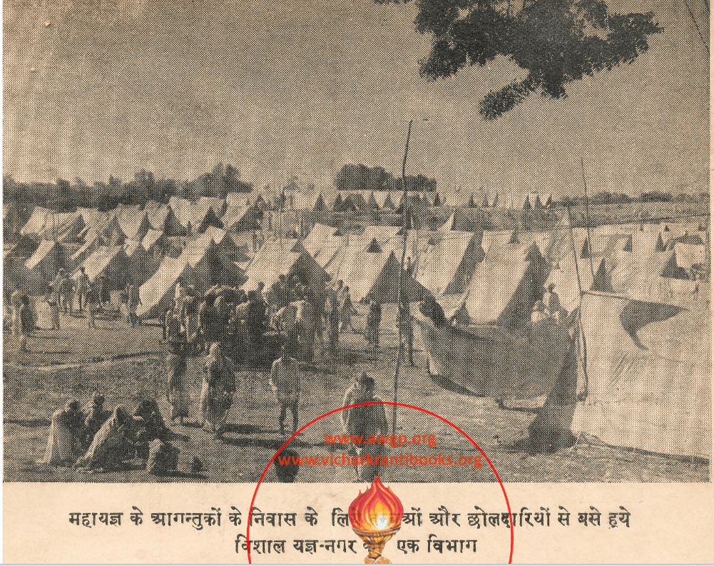 महायज्ञ के याज्ञिकों का आना तो कई दिन पहले से ही आरम्भ हो गया था लेकिन 21 नवंबर से आने वाली भीड़ का तांता लग गया। दिन हो यां रात हर समय स्टेशन से यज्ञनगर तक याज्ञिकों को बस, तांगा, रिक्शा, इक्का में आते देखा जा सकता था। रात के तीन बजे भी यज्ञनगर के कैम्पों में नवीन आगन्तुक उतरते देखे गए थे और उनके लिये स्थान की व्यवस्था की जाती थी । 22 नवंबर से तो यह जनसमूह एक बरसाती नदी की तरह उमड़ने लगा और कुछ प्रेक्षकों के अनुमानानुसार 23 नवंबर की प्रात: तक यज्ञनगर में ठहरने वालों की संख्या 50000 तक पहुंच गई। इसके बाद भी प्रतिदिन नवीन भागीदार और दर्शक आते रहे और 25 नवंबर को आचार्य जी ने अपने भाषण में आगुन्तकों की संख्या एक लाख बताई । इसमें तो सन्देह नहीं कि तपोभूमि से लेकर प्रेम महाविद्यालय तक,9 किलोमीटर का विस्तृत भूभाग, तमाम सड़कें, मैदान, खेत आदि इस समय नरमुंडों से भरे नज़र आते थे और एक मील का रास्ता तय करने में एक घंटे के लगभग का समय लग जाता था। चारों तरफ विभिन्न प्रकार की पोशाक पहिने, तरह-तरह की भाषाएँ बोलने वाले व्यक्तियों के समूह दिखते थे । स्टेशन पर प्रत्येक ट्रेन यात्रियों से ठसाठस भरी आ रही थी जिनमें पौन हिस्सा पीले वस्त्र वाले ही दिखाई पढ़ते थे। यात्रियों की ज़ुबानी यह भी सुनने में आया कि अनेक स्टेशनों पर यज्ञ में आने वाले लोगों की भीड़ इतनी ज्यादा है कि टिकिट देना बन्द कर दिया गया है । एक व्यक्ति ने बताया कि ग्वालियर स्टेशन पर 300 व्यक्तियों को टिकिट न मिलने के कारण वापस जाना पड़ा। कोटा में भी सैंकड़ों व्यक्ति स्टेशन से लौटा दिये गये ।