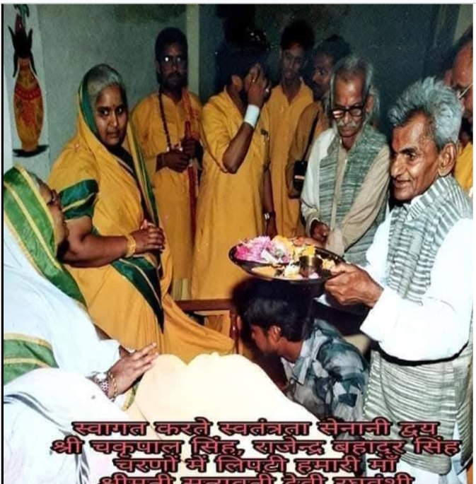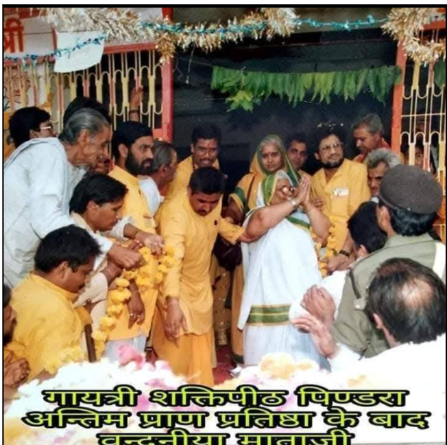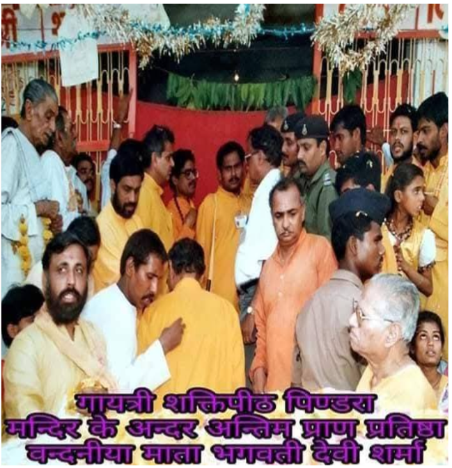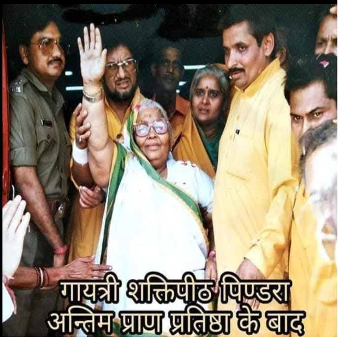 “गायत्री शक्तिपीठ पिण्डरा” पहुंचते ही हमारे ताऊ महान स्वतंत्रता संग्राम सेनानी श्री चकृपाल सिंह तथा पिताजी स्वतंत्रता संग्राम सेनानी श्री राजेन्द्र बहादुर सिंह की अगुवाई में वन्दनीया माताजी का भावभरा स्वागत किया गया। भावविभोर होकर हमारी माँ स्वतंत्रता संग्राम सेनानी श्रीमती सत्यवती देवी रघुवंशी वन्दनीया माताजी के चरणों में लिपट गईं, हमारी माँ के सिर पर हाथ रखकर वन्दनीया माताजी ने कहा कि आप तो सौभाग्यशाली हैं कि आपने अपने तीनों बेटे हमें सौंप दिए हैं। हम (जितेंद्र जी) लोग भी भाव विभोर थे। हमें कहाँ पता था कि आज एक इतिहास रचा जा रहा है। जिस गायत्री शक्तिपीठ पिण्डरा की प्राण प्रतिष्ठा करने वन्दनीया माताजी पधारी हैं वह उनके कर कमलों से प्राण प्रतिष्ठित “अन्तिम गायत्री शक्तिपीठ” कहलायेगी। प्राण प्रतिष्ठा के पूर्व श्री श्याम बिहारी दुबे के नेतृत्व में पूर्ण विधि विधान से प्राण प्रतिष्ठा का प्रारंभिक चरण पूरा किया गया।