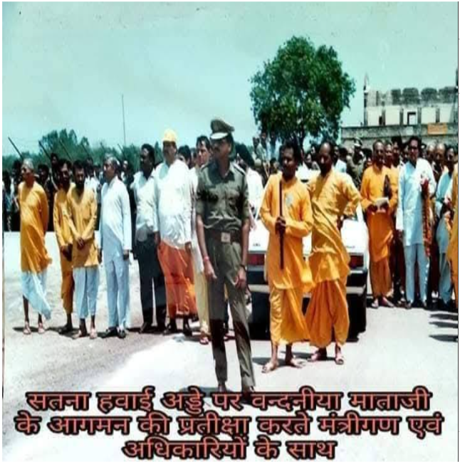 सुबह से ही लाखों मानस पुत्रों की निगाहें अपनी परम वन्दनीया माता जी की अगवानी के लिए सतना हवाई अड्डे पर टिकी थीं। मध्य प्रदेश सरकार का विशेष विमान वन्दनीया माताजी को देहरादून के जौलीग्रांट हवाई अड्डे से राजकीय अतिथि के रूप में लेकर जैसे ही सतना (मध्य प्रदेश) हवाई अड्डे के ऊपर दिखा गायत्री माता, परम पूज्य गुरुदेव तथा वन्दनीया माताजी के जयकारों से समूचा आसमान गूंज उठा। हवाई अड्डे पर वन्दनीया माताजी का भावभरा स्वागत करने के बाद अनेकों वाहनों के काफिले के साथ माताजी कुछ क्षण “सतना शक्तिपीठ” में रुककर “गायत्री शक्तिपीठ पिण्डरा” की प्राण प्रतिष्ठा के लिए रवाना हो गईं।