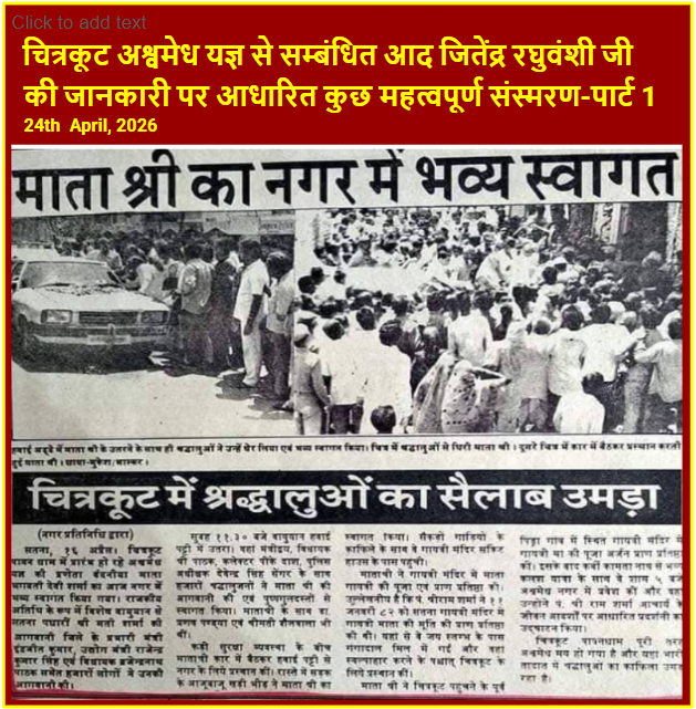 जो जानकारी उन्होंने “चित्रकूट अश्वमेध यज्ञ” से सम्बंधित पांच फेसबुक पोस्ट्स में दी है, उन्हें देखकर हमारा रुकना असंभव था। फिर क्या था उन्हें कितनी ही बार पढ़ा, देखा, एडिट किया और साथिओं के समक्ष प्रस्तुत करने का प्रयास किया। पांचों पोस्ट्स में ऐसे दुर्लभ चित्र हैं जिन्हें शार्ट वीडियो में प्रस्तुत करना उचित रहेगा।