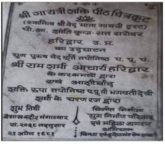 21 अप्रैल 1994 वाले दिन परम पूज्य गुरुदेव के कर कमलों से प्राण प्रतिष्ठित 24 शक्तिपीठों में से एक “गायत्री शक्तिपीठ चित्रकूट” के प्राण प्रतिष्ठा का तेरहवां वर्ष पूरा हुआ था। 45 वर्ष पूर्व (2026 के अनुसार) परम पूज्य गुरुदेव के कर कमलों से गायत्री शक्तिपीठ चित्रकूट की प्राण प्रतिष्ठा हुई थी। प्रातःकाल शक्तिपीठ में गायत्री माता को नमन करके माताजी ने व्यवस्थापक श्री राम नारायण त्रिपाठी से कहा कि अश्वमेध यज्ञ तो आज पूरा हो गया, पर परम पूज्य गुरुदेव चाहते थे कि “मन्दिर जन जागरण के केन्द्र बनें” यह दायित्व अब तुम्हें पूरा करना है। विश्व पटल पर इस गायत्री शक्तिपीठ तथा पिण्डरा गायत्री शक्तिपीठ एवं इस अश्वमेध यज्ञ का एक महत्वपूर्ण स्थान हो।